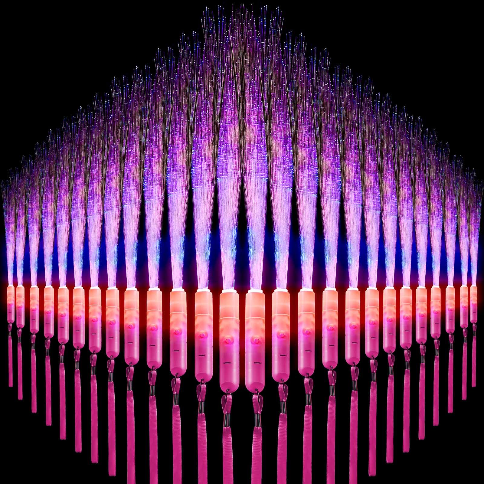Glow fiber parts are made up of plastic and the length of the LED wand is 10.24 inch; These grab handles are made from quality acrylic, reliable and sturdy without breaking easily, lightweight and portable, so you can carry glow stick to anywhere